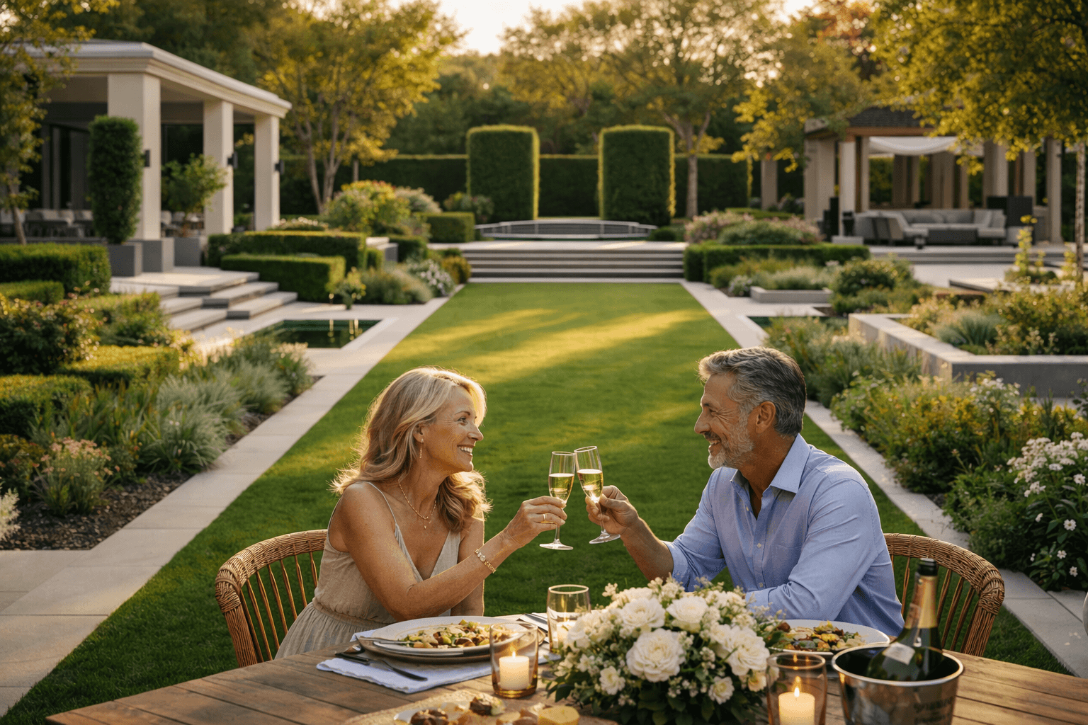 To redesign both front and rear gardens alongside a new driveway, creating a cohesive, high-quality landscape with strong kerb appeal, practical outdoor living spaces and long-term durability.