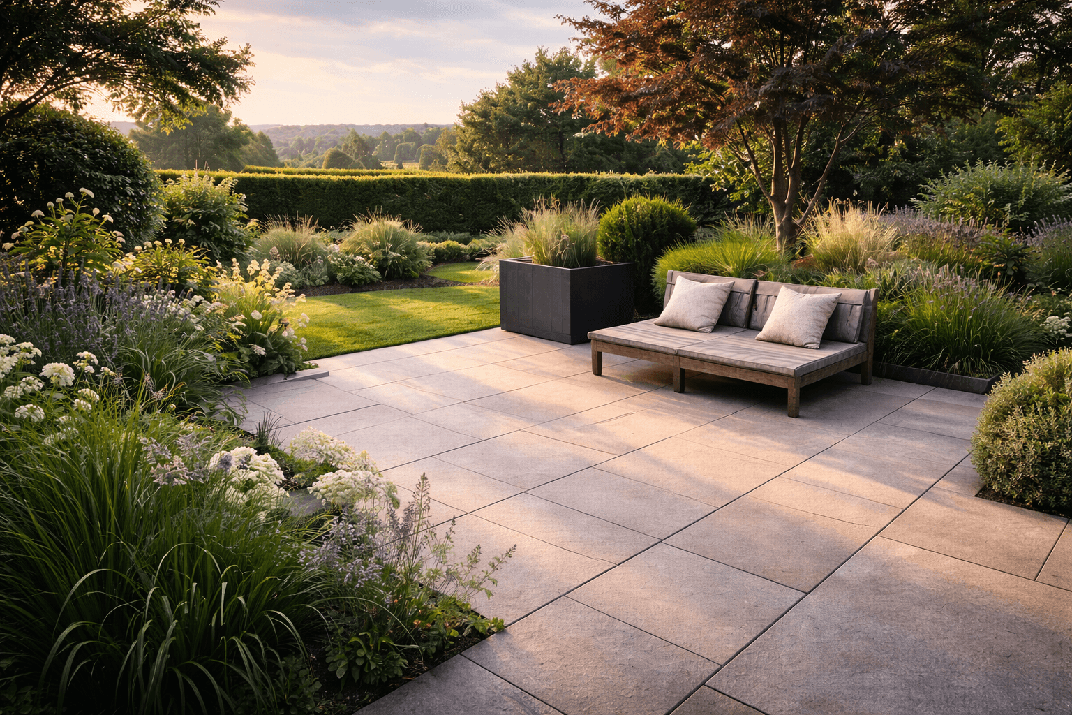 Whether you want a peaceful retreat, a family-friendly lawn, or a striking paved terrace, we blend practical landscaping with creative design to elevate your outdoor space into something you’ll love to use.