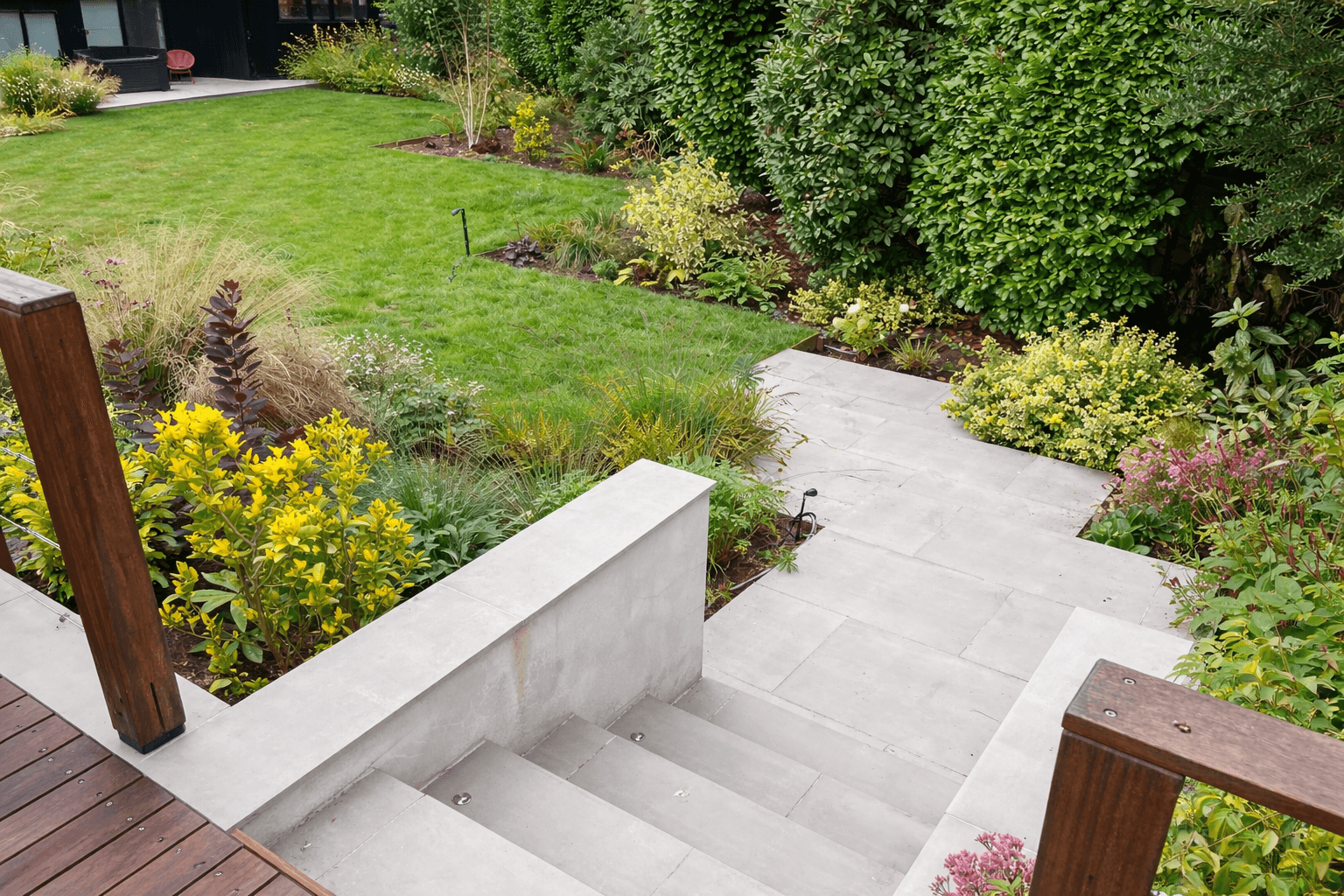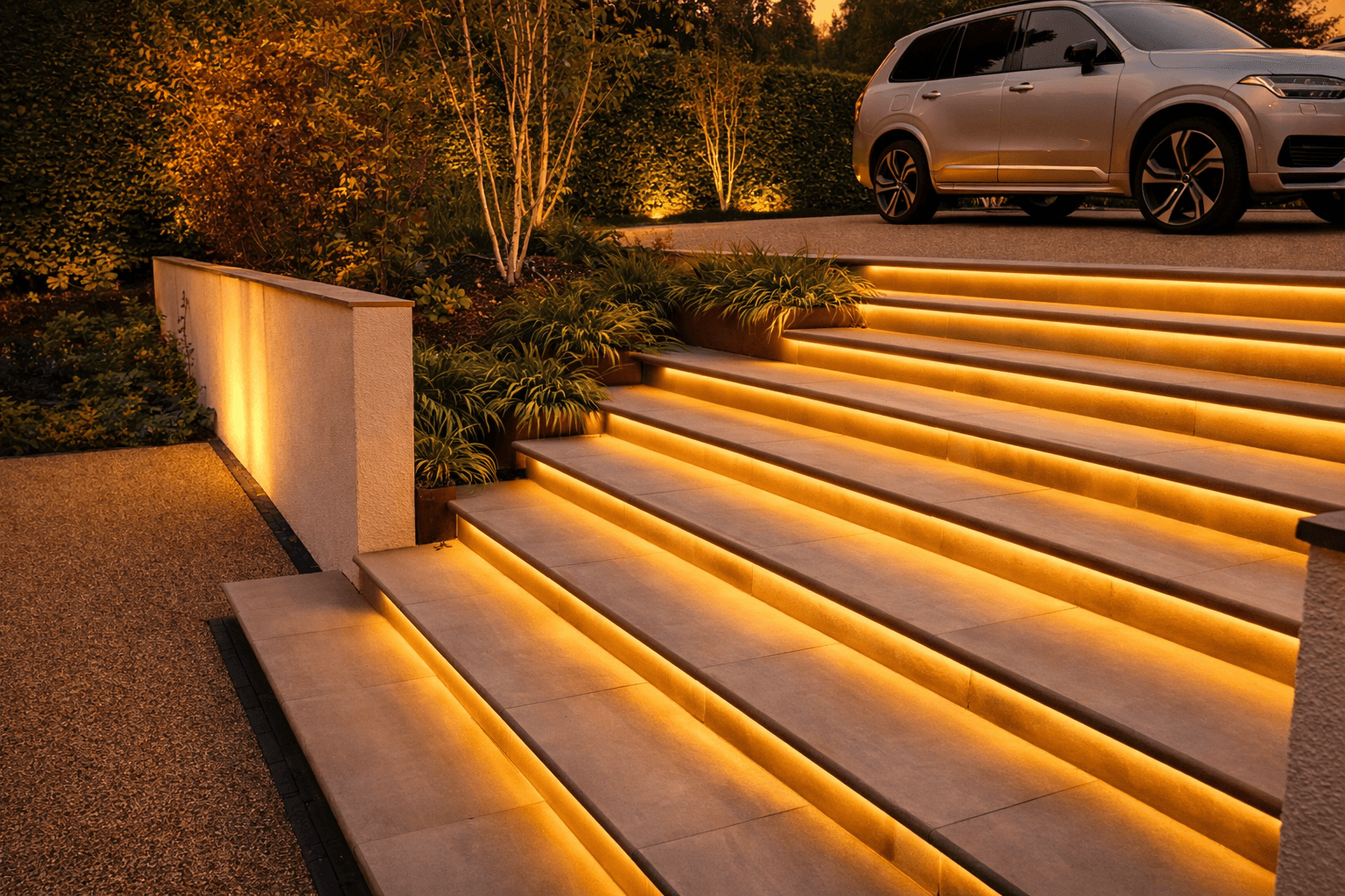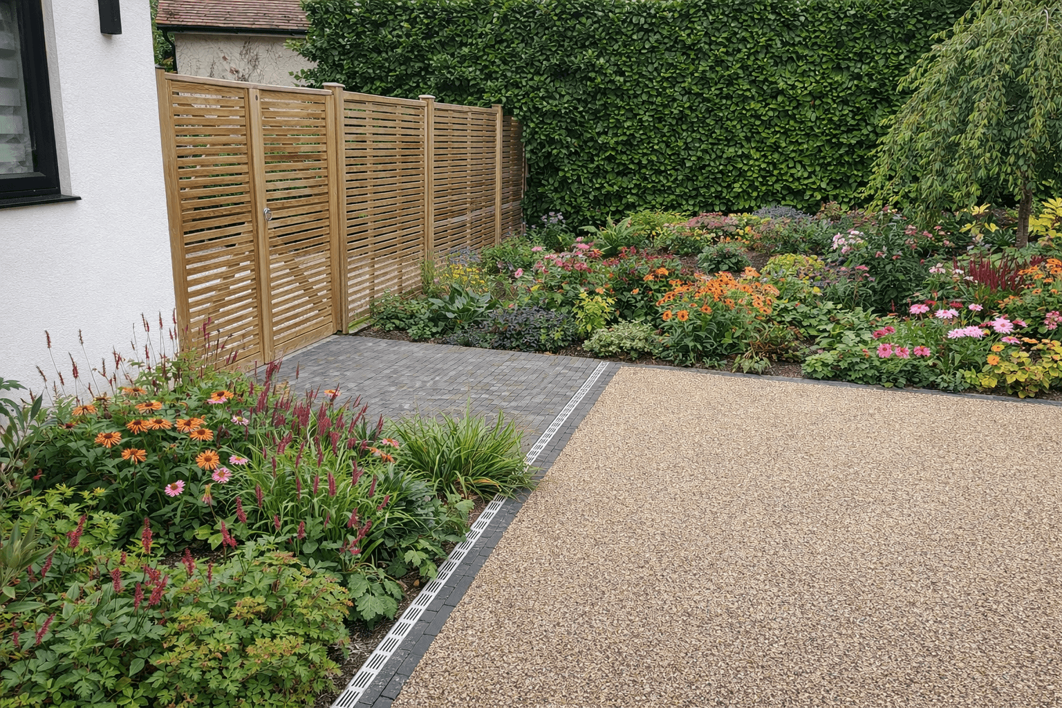 A cohesive large-scale garden and driveway scheme that significantly improves kerb appeal and usability, delivering a refined outdoor environment designed for everyday living and entertaining.